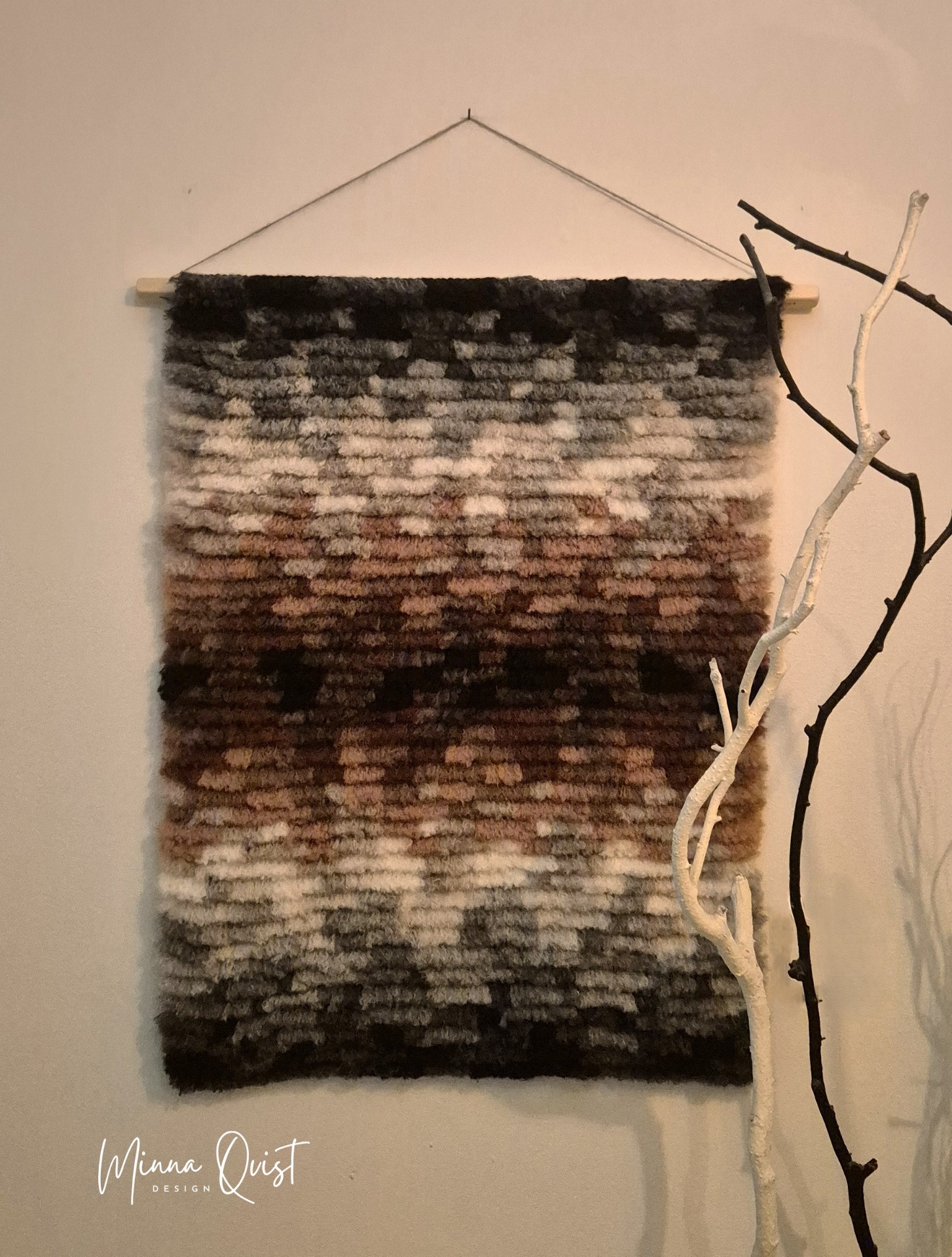 Minna Qvist:n käsityönä tehtyjä tuotteita; taidetta, unisieppareita, virkattuja ja neulottuja asusteita